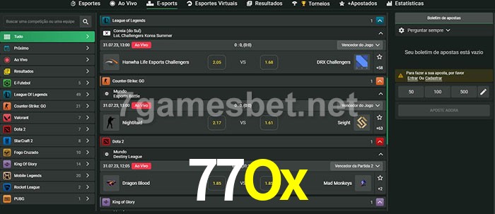 A aposta 77Ox oferece aos jogadores a experiência mais conveniente de apostas em eSports!